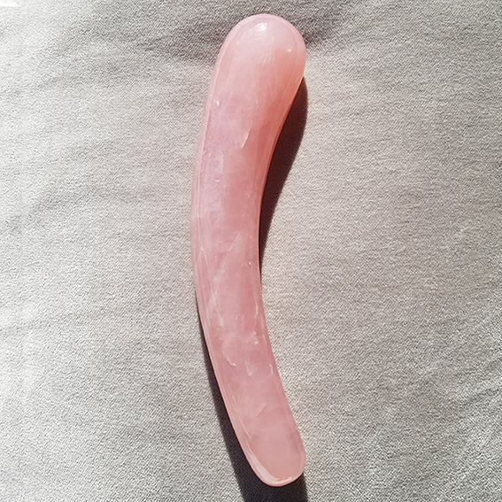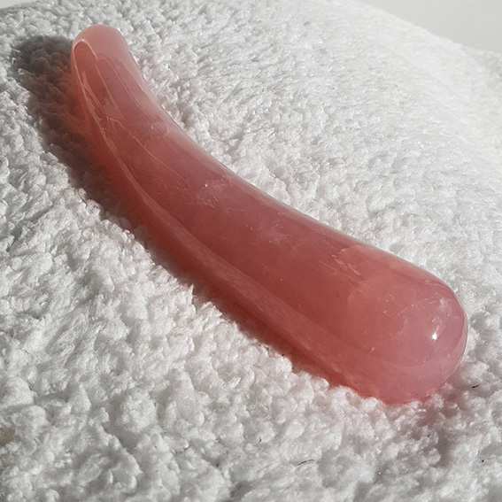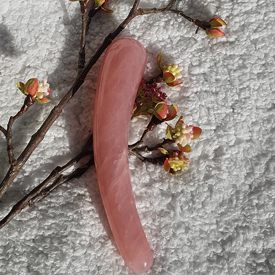 De "Rose" is vervaardigd uit natuurlijk Rozenkwarts-kristal en gepolijst tot een fallische staafvorm voor ultiem plezier.